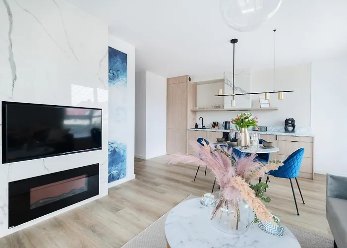 Эти апартаменты площадью 45 м^2 разместились в районе Sobieszewo. За 36 минут можно доехать до аэропорта Международный Гданьск Лех Валенса. Остров Собешево находится в нескольких минутах ходьбы.